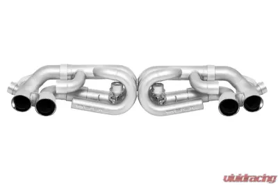 SOUND: The sound is aggressive - a primary benefit of our system is that with valves open, there is a straight, unrestricted path from the 2.5" piping to the tips - but we've effectively massaged extra refinement into the system to match the premium experience that embodies all things Porsche. With valves both open and closed, the X-pipe helps smooth the sound even further. All in all, we're very happy with the results and we're sure you will be too! With valves open, the free-flowing nature of the system allows for a Cup car inspired sound - greater volume with a greater amount of crackles and burbles on deceleration. This system is for those who want added aggression at the press of a button. With valves closed, the tone is very reasonable and refined, drone is kept to a minimum while still allowing for the flat six sound to be heard.