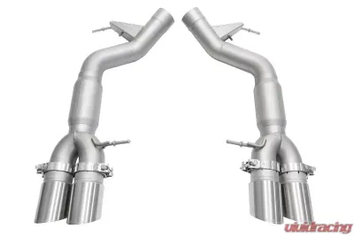 CONSTRUCTION: Each set of muffler bypass pipes is made from mandrel bent T304L 3" .065" wall stainless steel tubing, straight through race resonators with a full metal packing design for maximum durability, and laser cut brackets for perfect fitment. Choose from several hand finished tip options to get the look that suits your M5 best. Mikalor Supra Heavy-Duty Clamps are included to securely hold the tips onto the system.