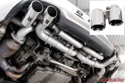 Porsche 991.1 Base with Porsche Sports Exhaust (PSE) / S / GTS Carrera Valved Performance Exhaust SystemOur 991.1 Carrera Valved Performance Exhaust System has been designed with the professional enthusiast in mind. With valves open, exhaust gases are free to exit through a completely unrestricted path out the tips offering a flat six symphony with a tone that will raise the hairs on the back of your neck! On your way to pick up a client or heading out to dinner with someone special? Keep the valves in closed position and enjoy a refined low key tone as the factory side mufflers do their job quite well. If you're worried about drone on your PDK equipped car, this system will not leave you disappointed. Many owners are underwhelmed with their 991.1 Carrera's sport exhaust sound and performance - it's just not enough. We've set out to create an exhaust with a true Jekyll and Hyde personality that matches perfectly with the persona of the Carrera - a wolf in sheep's clothing. Our first priority was to design the system so that with valves open, exhaust gases would have a straight flow path. By using a larger tubing diameter, smooth radius bends, and proper x-pipe crossover flow characteristics (improving exhaust scavenging effects, leading to increased volumetric efficiency), our system improves throttle response and performance drastically over the restrictive factory sport exhaust.