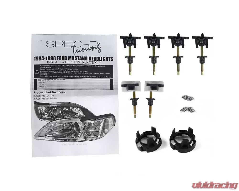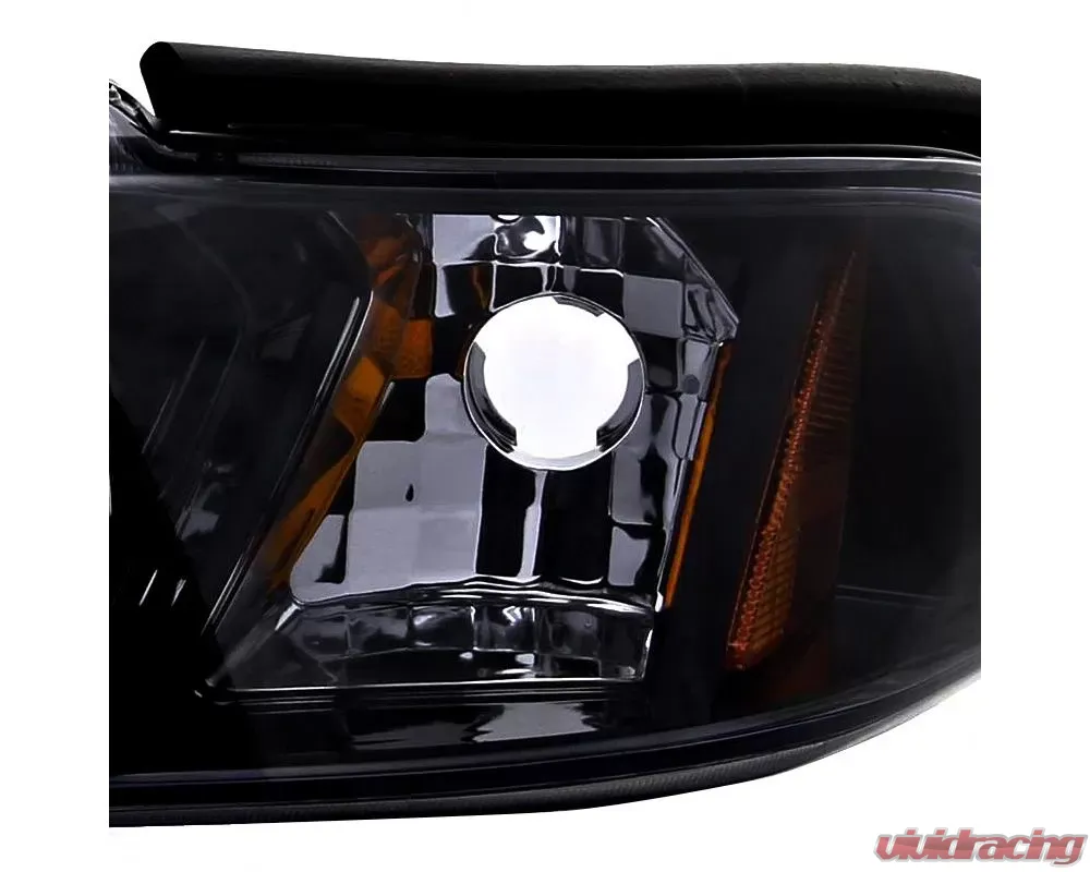 Spec-D Crystal Headlights w/ Amber Reflectors (Chrome Housing/Smoked Lens) Ford Mustang 1994-1998