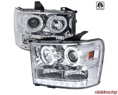 Spec-D Dual Halo Projector Headlights (Chrome Housing/Clear Lens) GMC Sierra 2007-2014