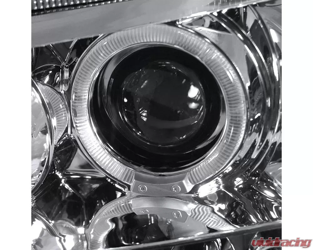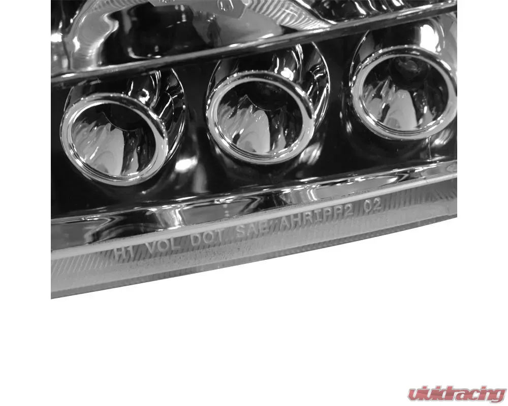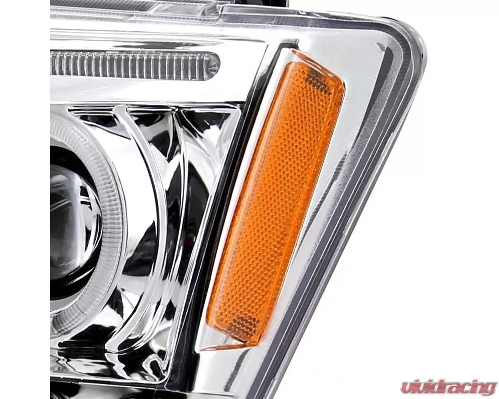 - Chrome housing, clear lens dual halo projector headlights with LED accent lights