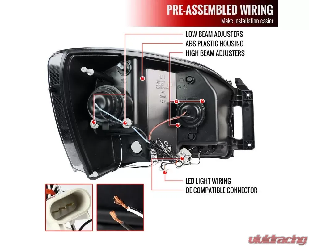 - All wiring for headlights are pre-assembled for essential plug and play application