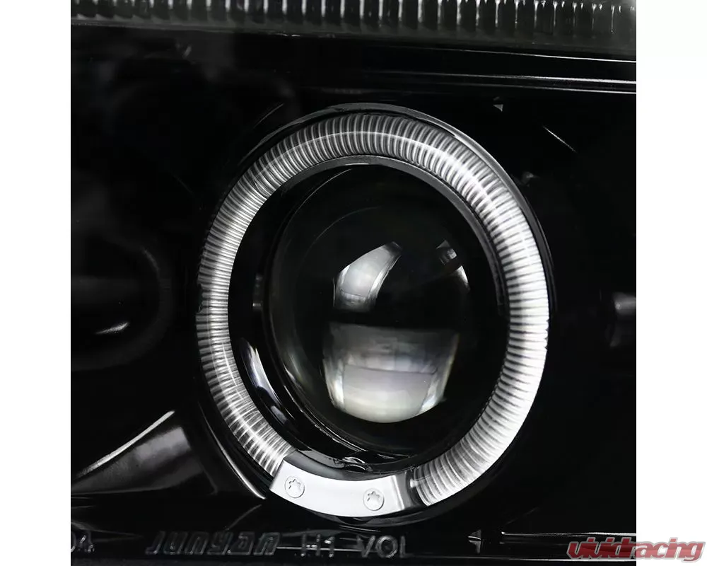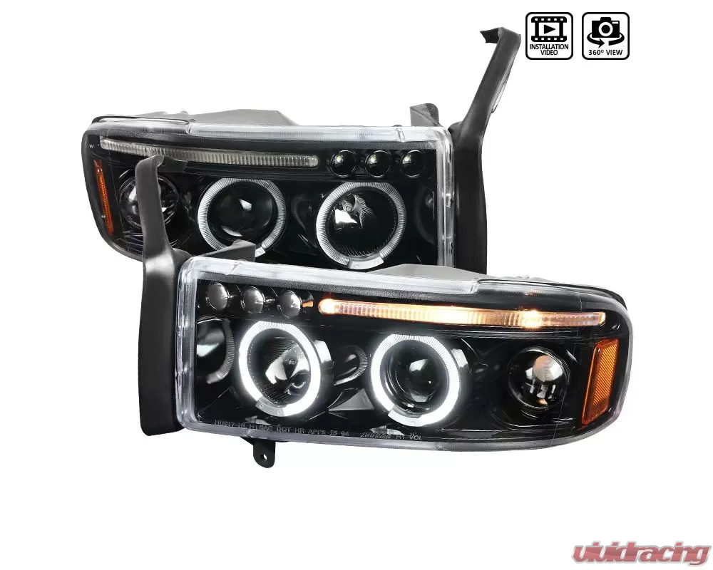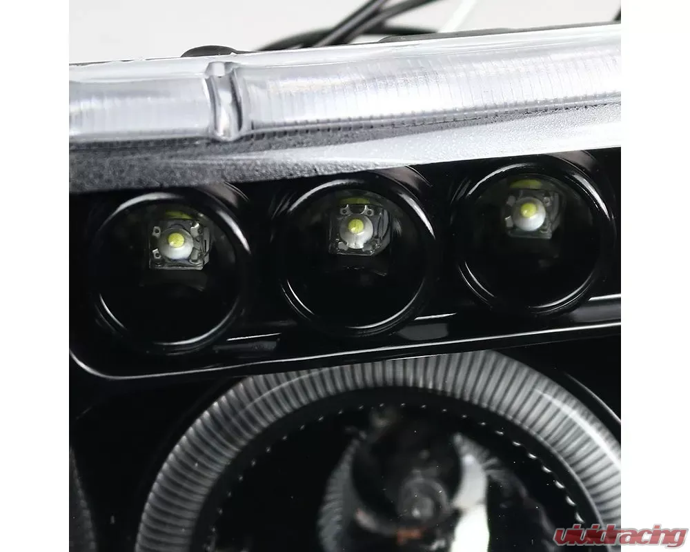 - Jet black housing, clear lens dual halo projector headlights with LED accent lights