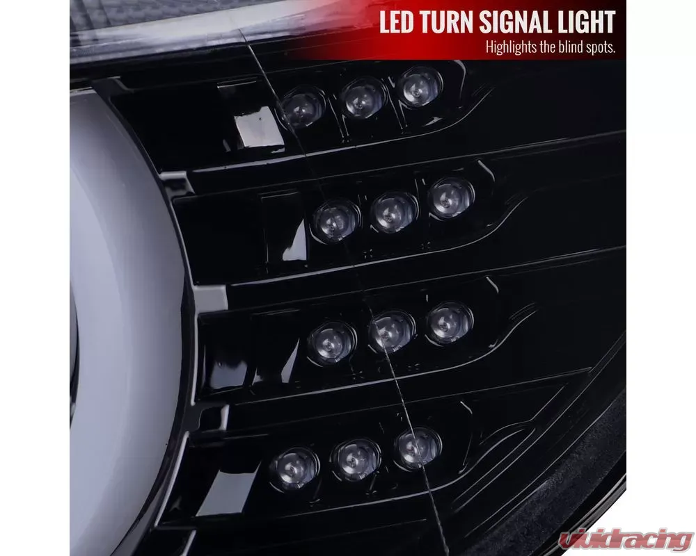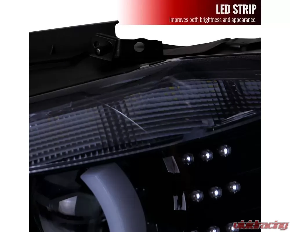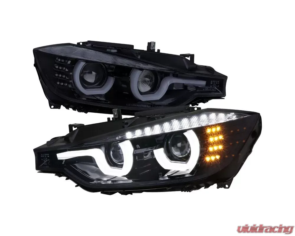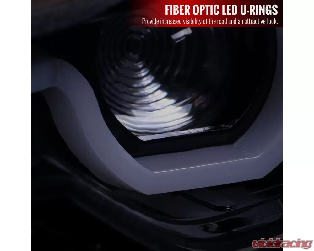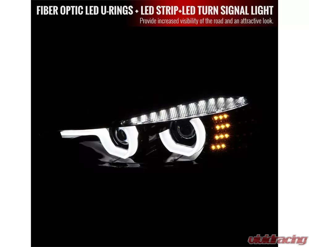 - Comes with with (1) set of both Driver and Passenger Side dual LED U-bar projector headlights with LED turn signal lights in a glossy black housing with smoked lens