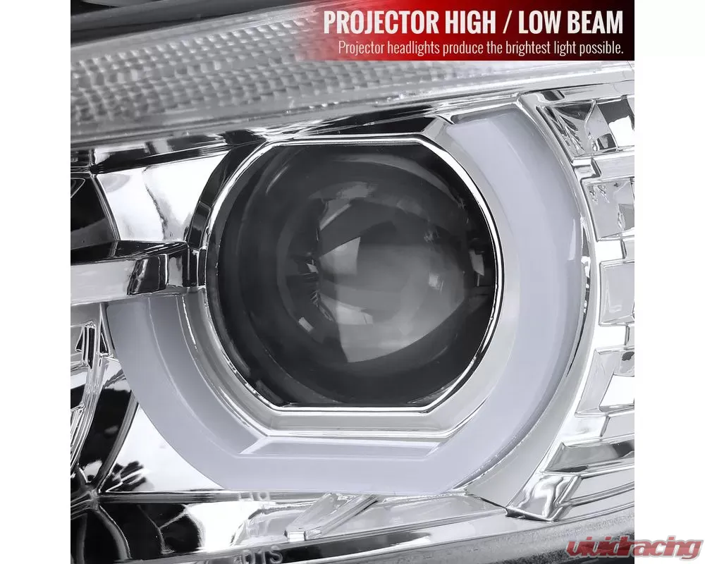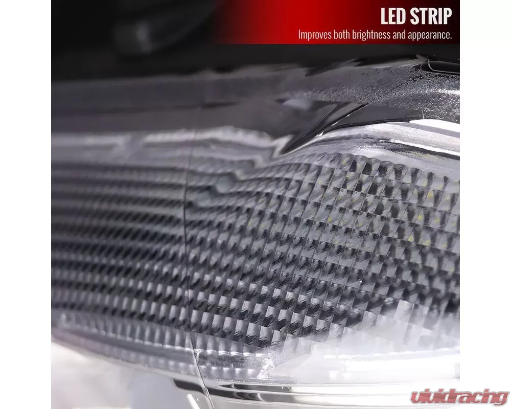 - Chrome housing, clear lens dual U-bar projector headlights with LED light strip & LED turn signal lights