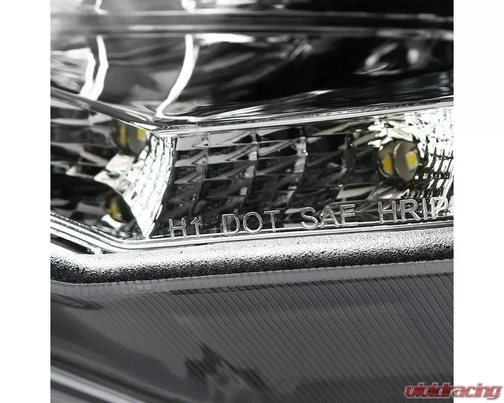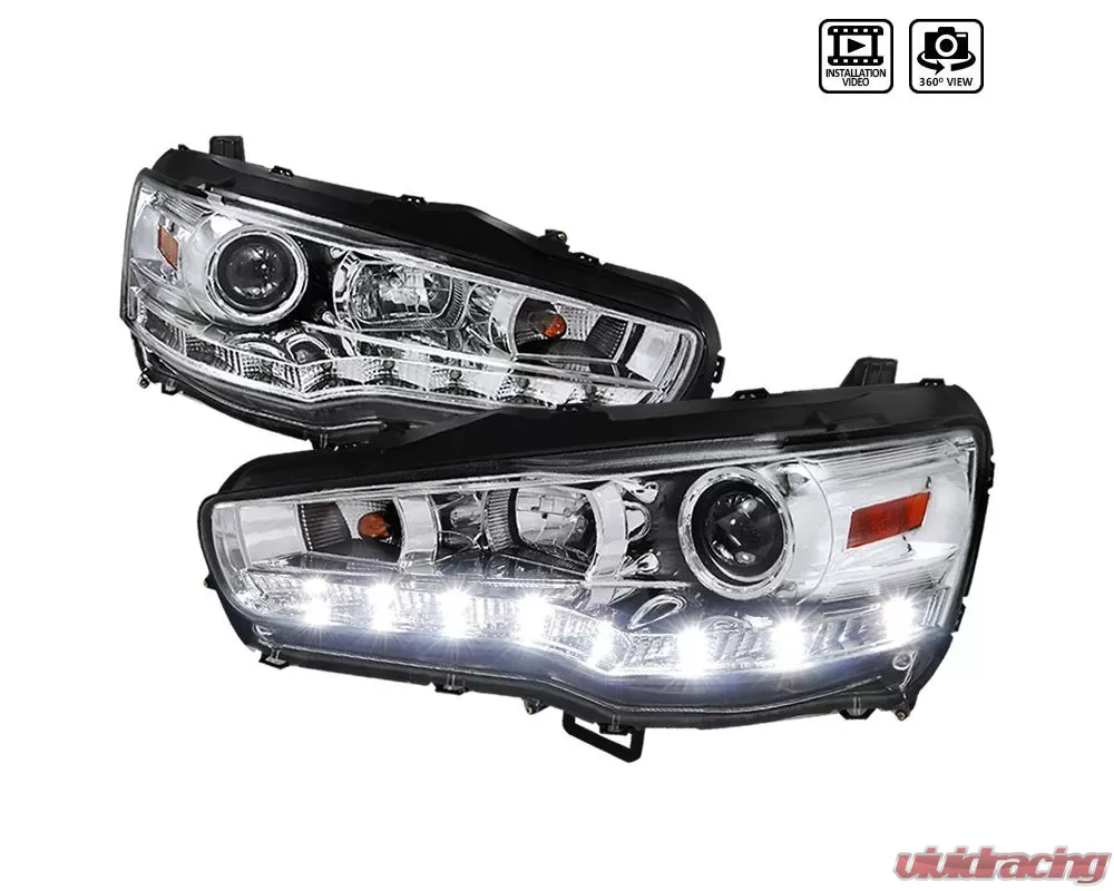 - Chrome housing, clear lens projector headlights with Audi R8 style LED light strip