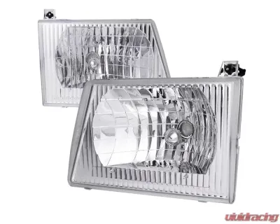 Spec-D Factory Style Crystal Headlights (Chrome Housing/Clear Lens) Ford E-Series 1992-2006