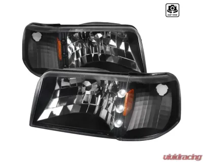 Spec-D Factory Style V2 Headlights w/ Corner Lights (Matte Black Housing/Clear Lens) Ford Ranger 1993-1997
