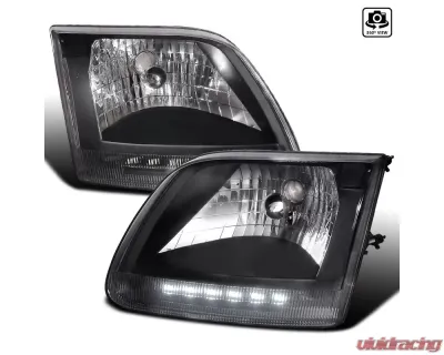Spec-D Factory Style Headlights w/ SMD LED Light Strip (Matte Black Housing/Clear Lens) Ford Expedition | F-150 1997-2004