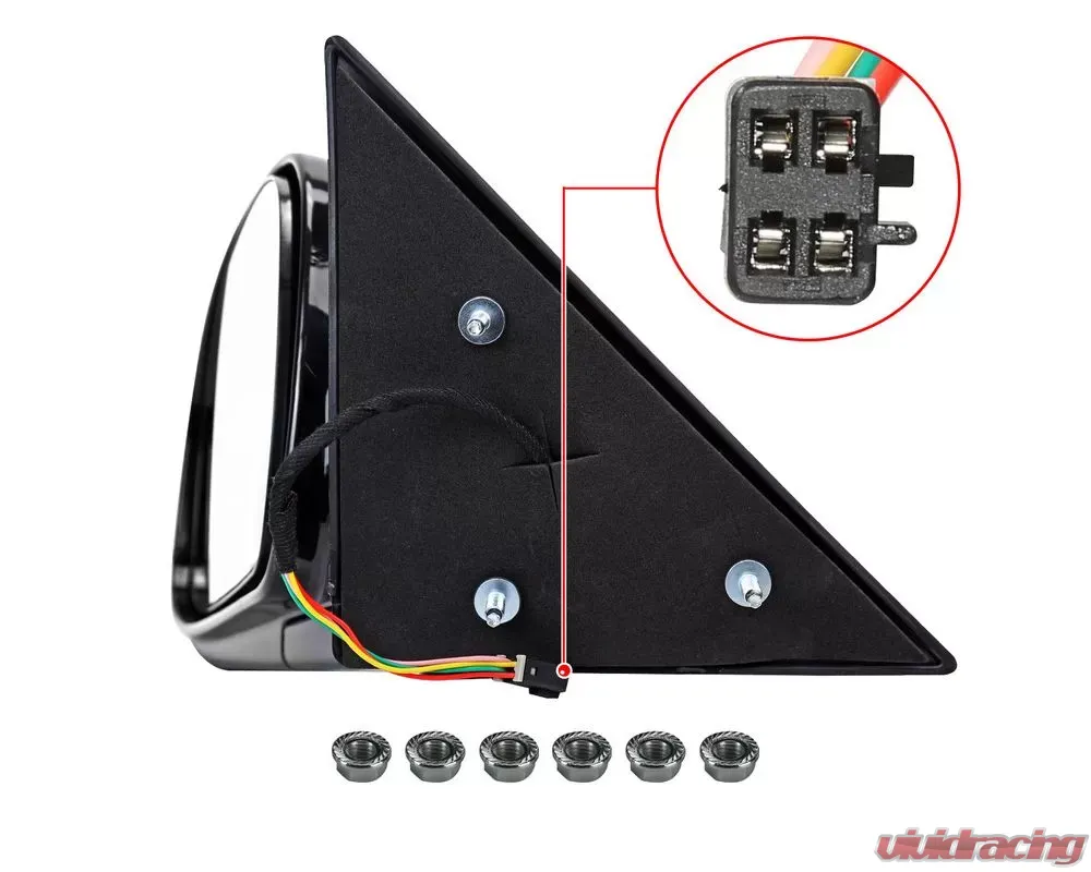 - Includes (1) Right/Passenger Side power adjustable manual fold mirror in a glossy black finish