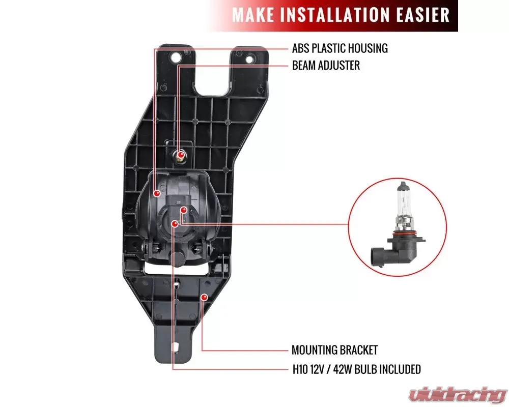 - H10 12V/42W bulbs, mounting brackets and mounting hardware are included