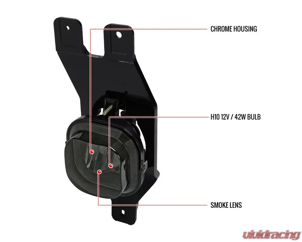 - Comes with 1 pair of Driver and Passenger Side fog lights with chrome housing and smoked lens