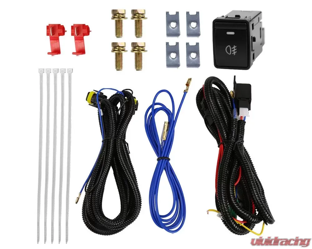 - H11 12v/55w bulbs, pre-assembled wiring harness, on/off switch, bezels, wire connectors and relay are included