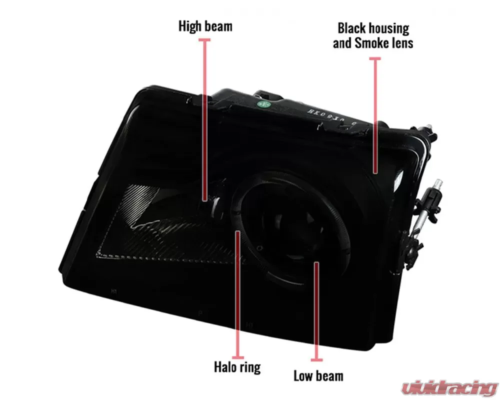 • Includes 1 pair of black housing, smoked lens projector headlights with halo rim