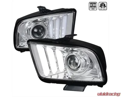Spec-D LED Bar Projector Headlights (Chrome Housing/Clear Lens) Ford Mustang 2005-2009