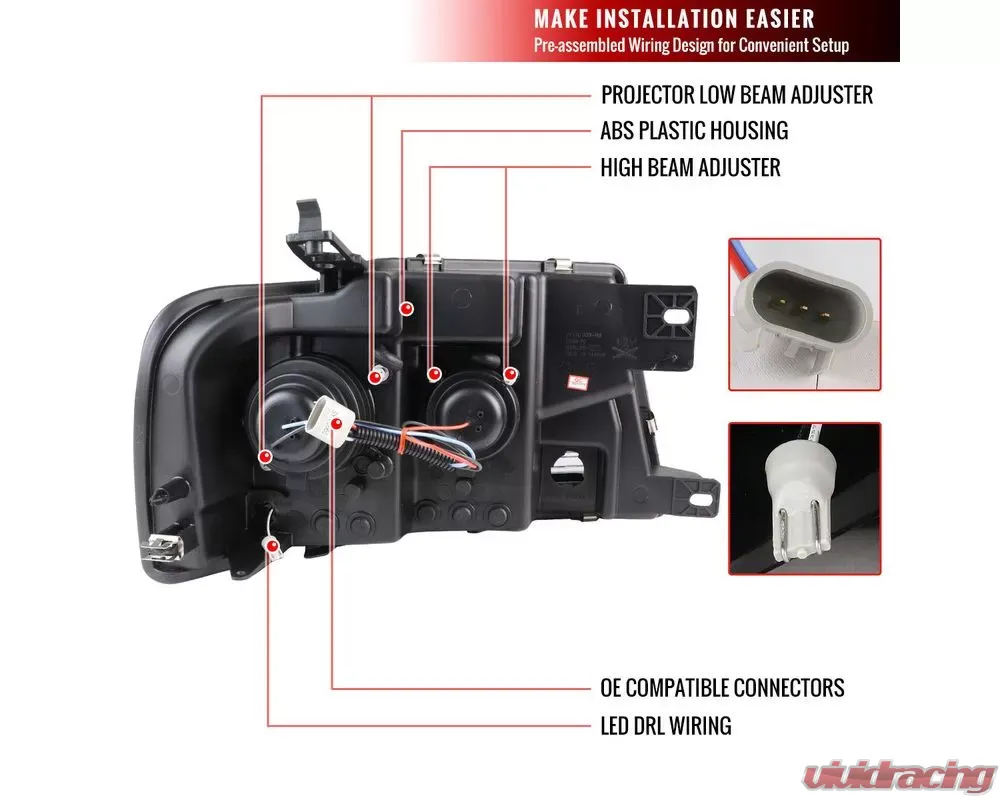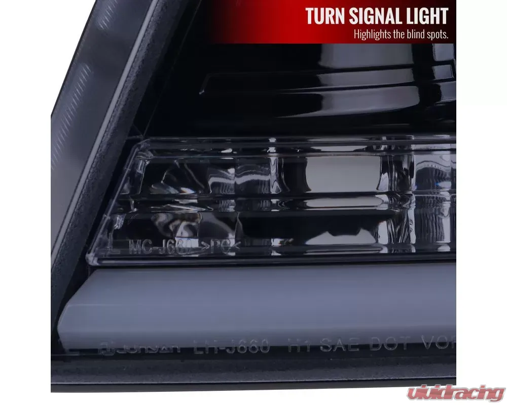 - Comes with (1) pair of glossy black housing with smoked lens LED C-bar projector headlights