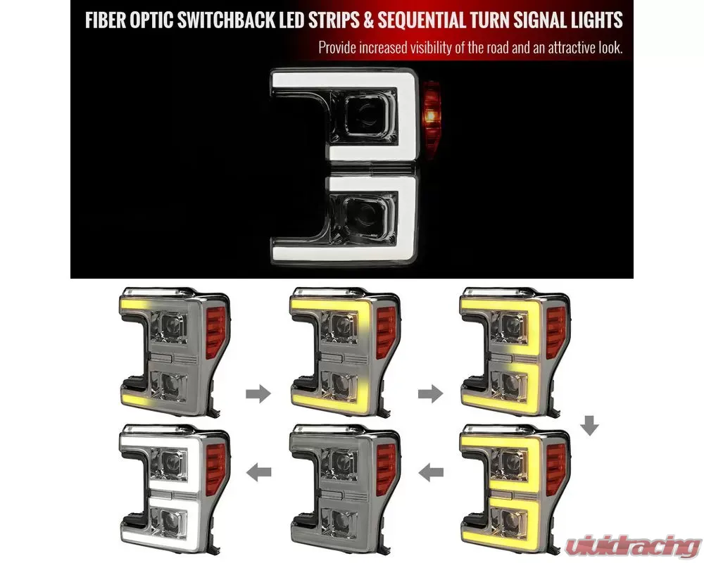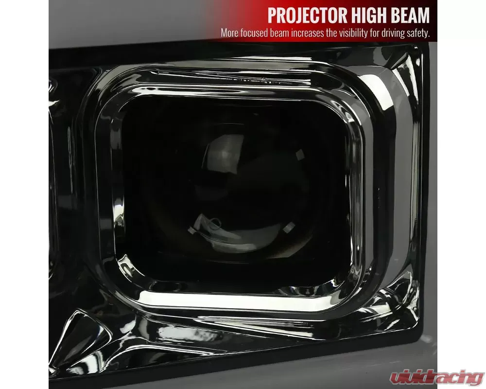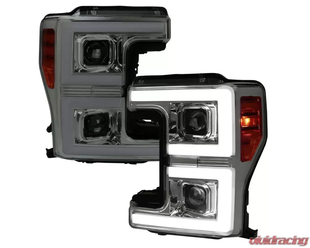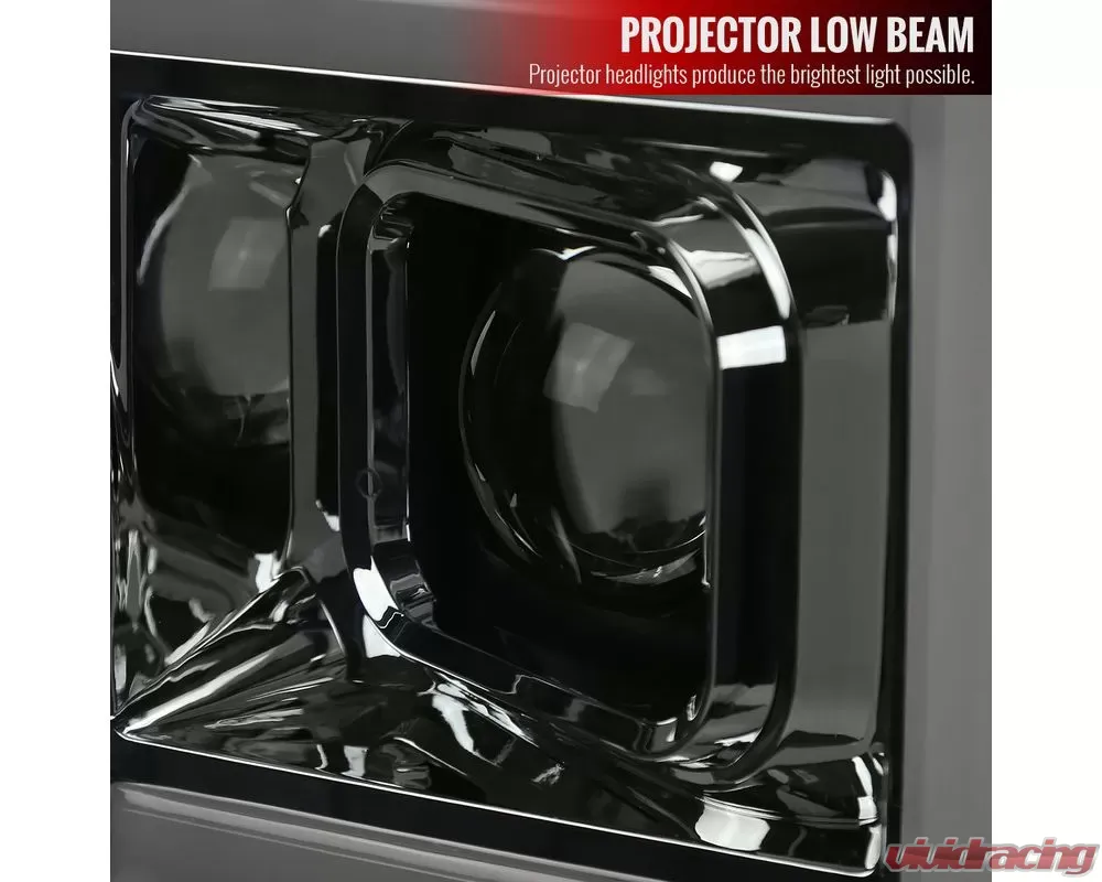 - Chrome housing, smoked lens projector headlights with LED C-bar & sequential turn signal light bar function