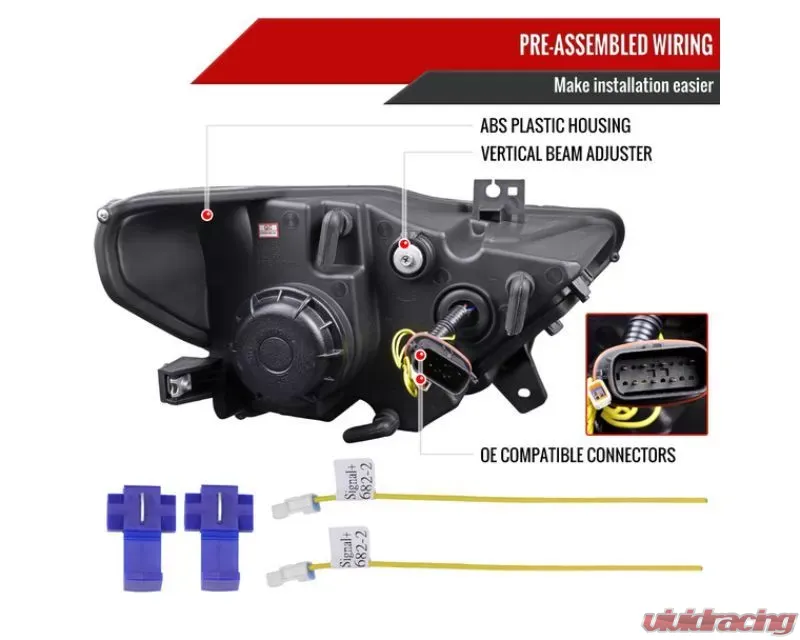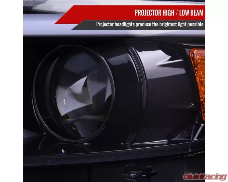 - Comes with (1) pair of projector headlights in glossy black housing, smoked lens, and amber reflector