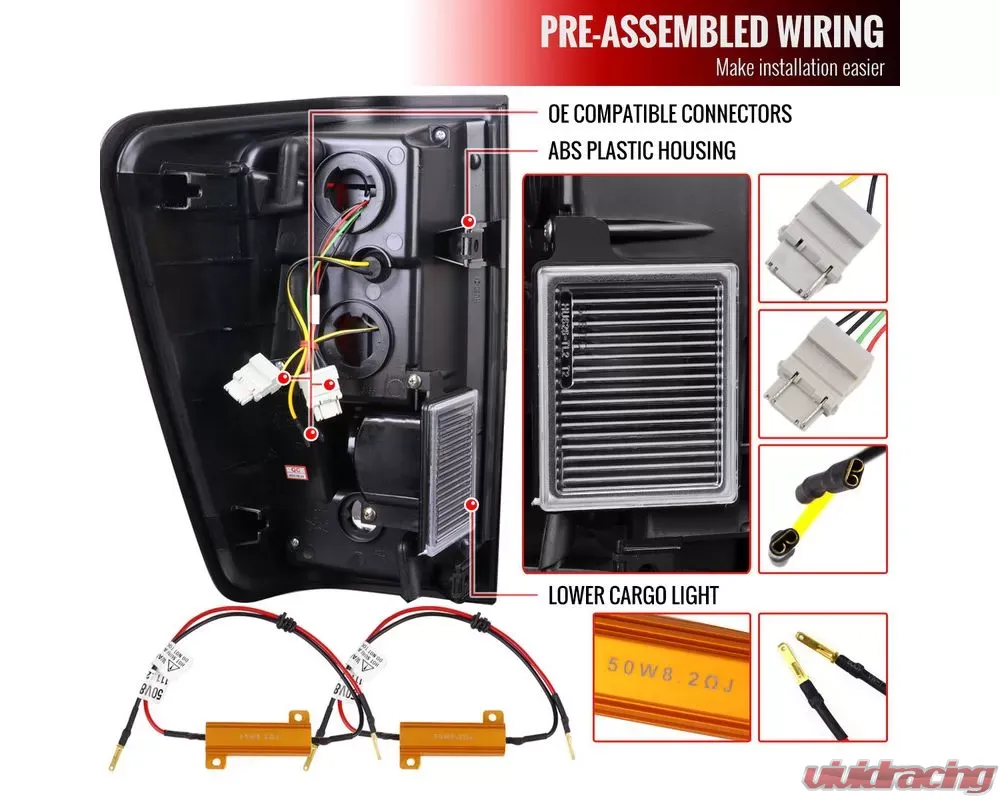 - All wiring for the tail lights are pre-assembled for the essential plug and play application