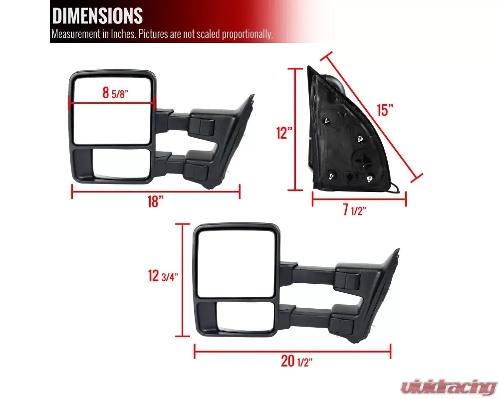 - Comes with a pair of Driver and Passenger Side towing mirrors with smoke lens signal lights