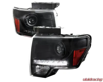 Spec-D Projector Headlights w/ LED Light Strip (Matte Black Housing/Clear Lens) Ford F-150 2009-2014