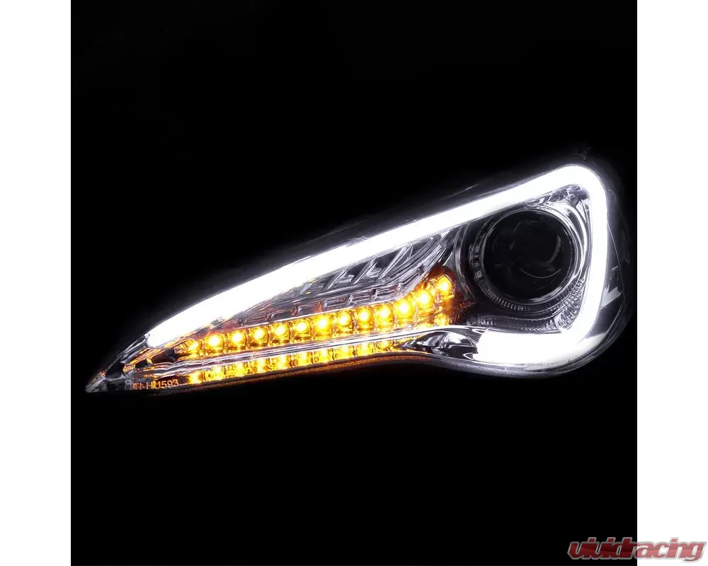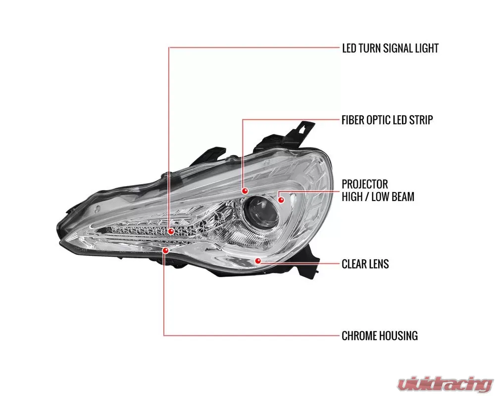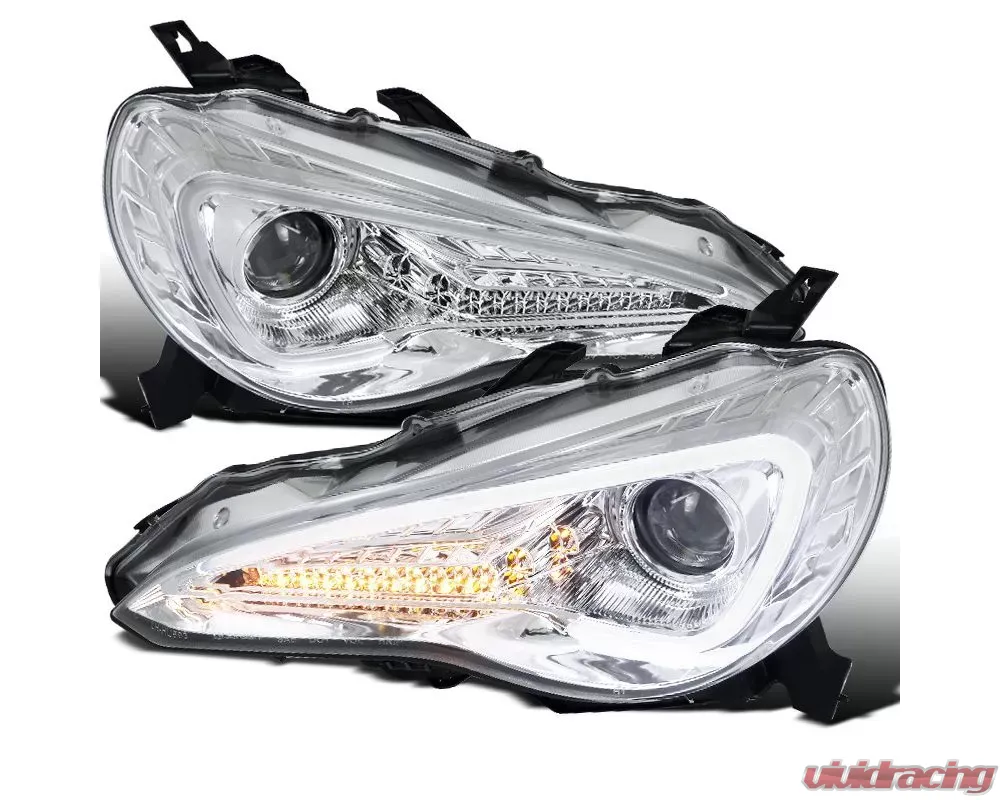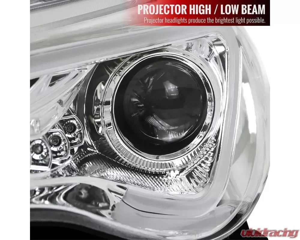 - Comes with chrome housing clear lens projector headlights with LED strip & turn signal lights