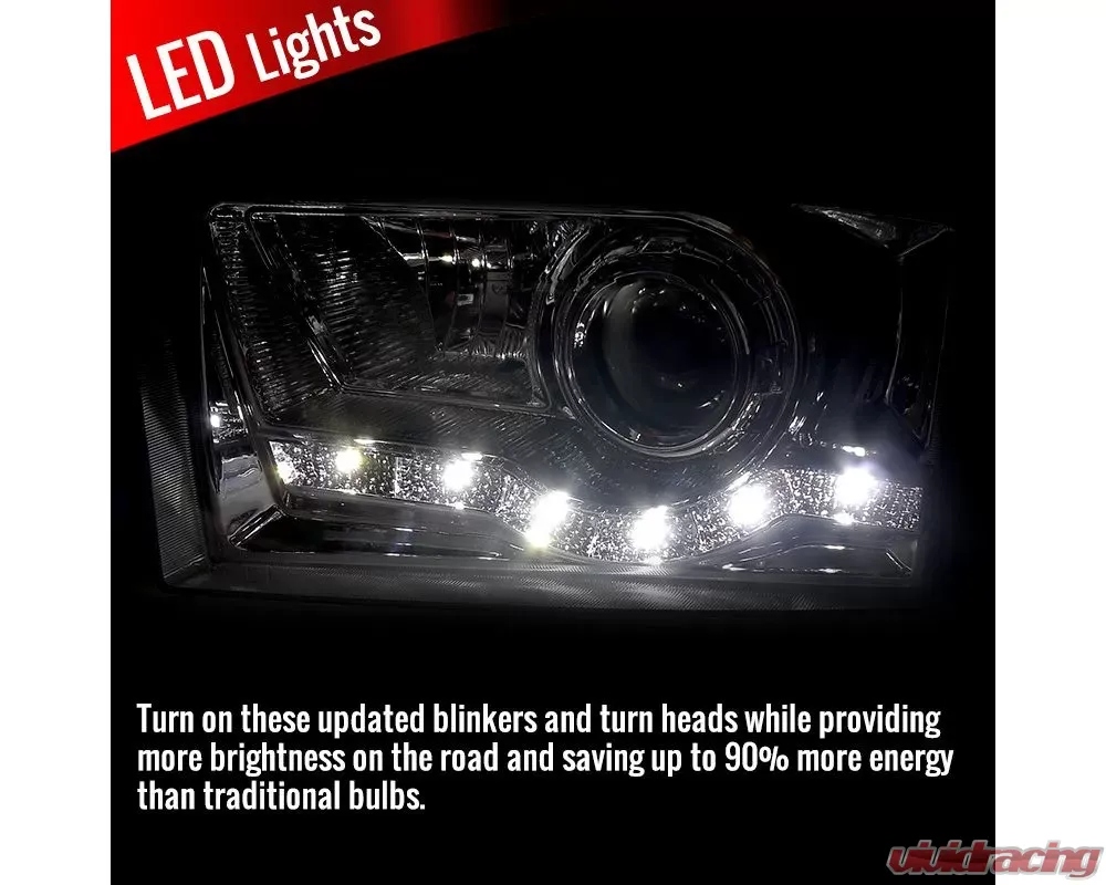 - Chrome housing, clear lens projector headlights with SMD LED light strip