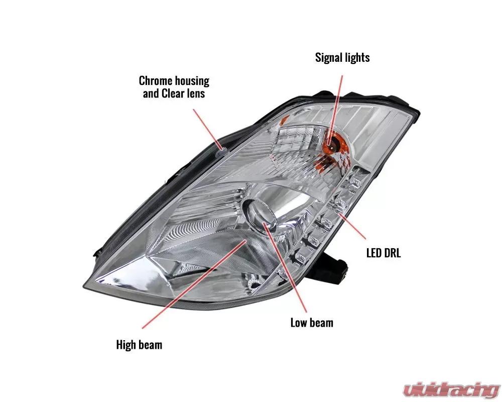 Spec-D Projector Headlights w/ SMD LED Light Strip (Chrome Housing/Clear Lens) Nissan 350Z 2003-2005
