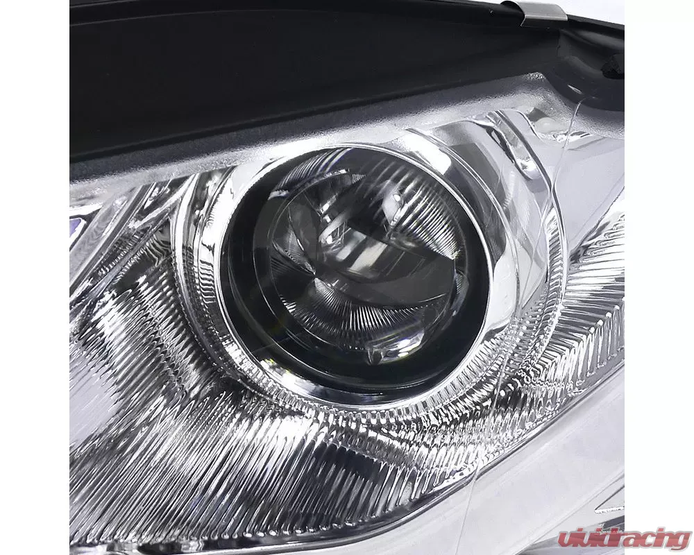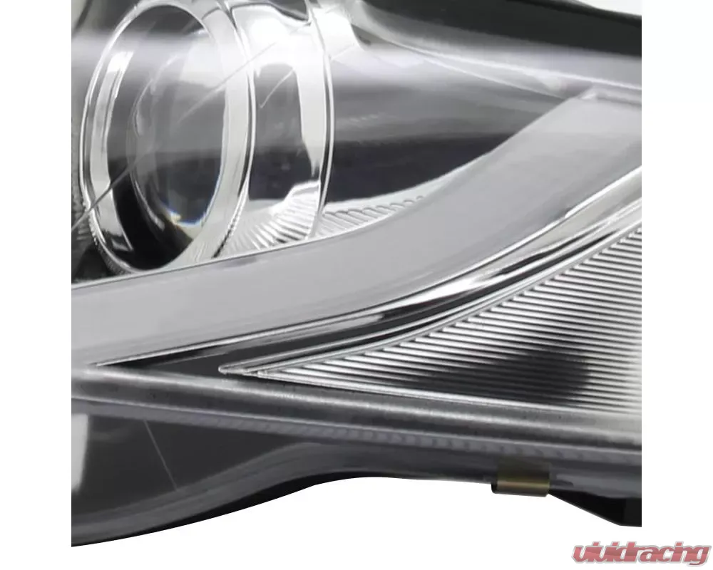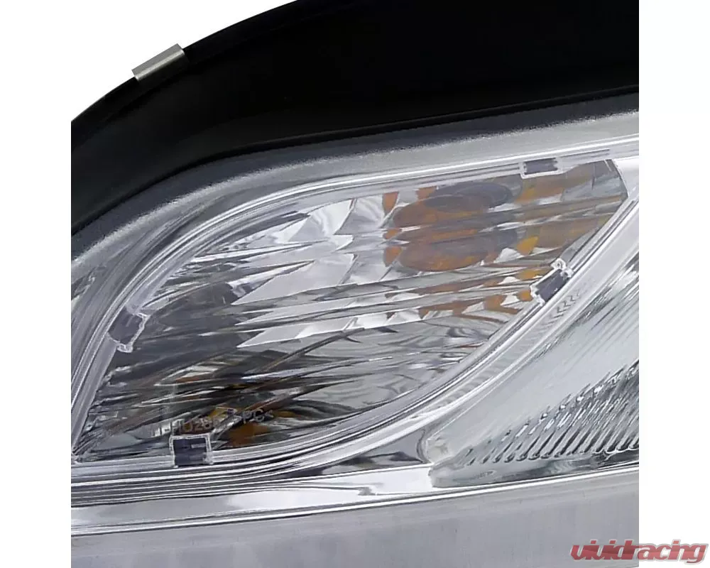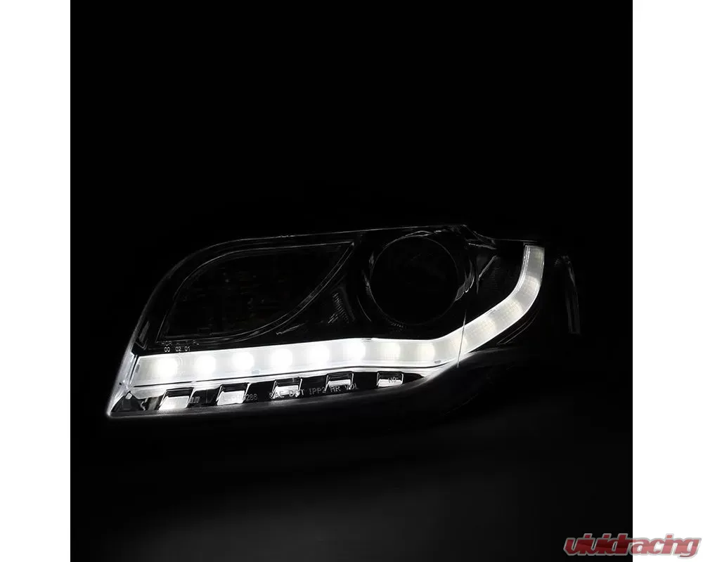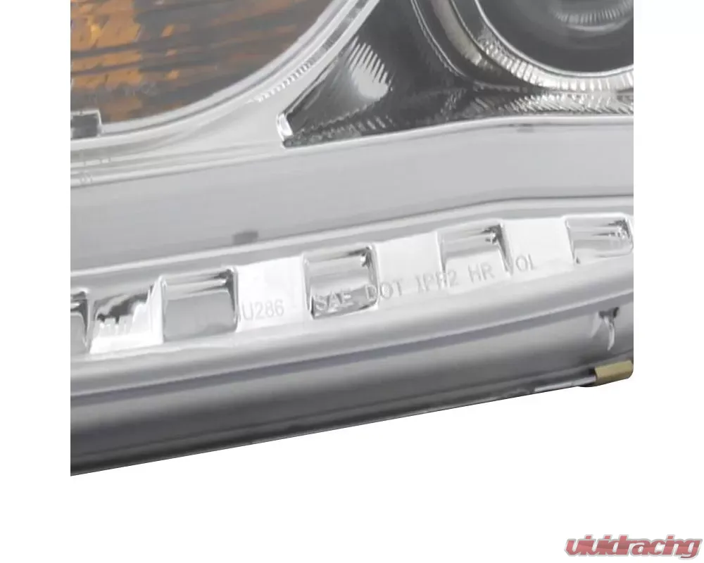 - Includes 1 pair of chrome housing, clear lens projector headlights with R8 style LED light bar