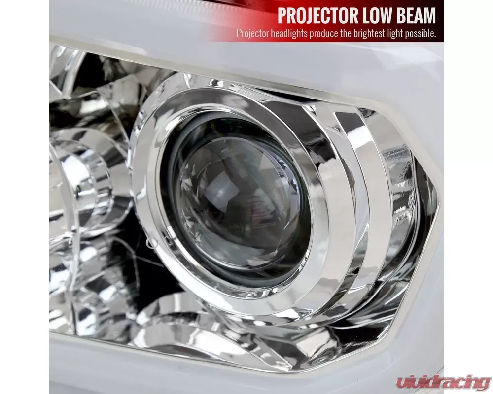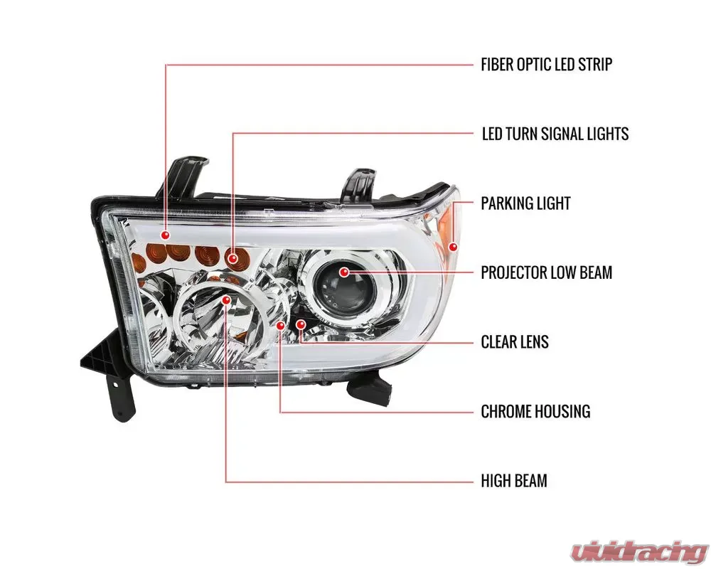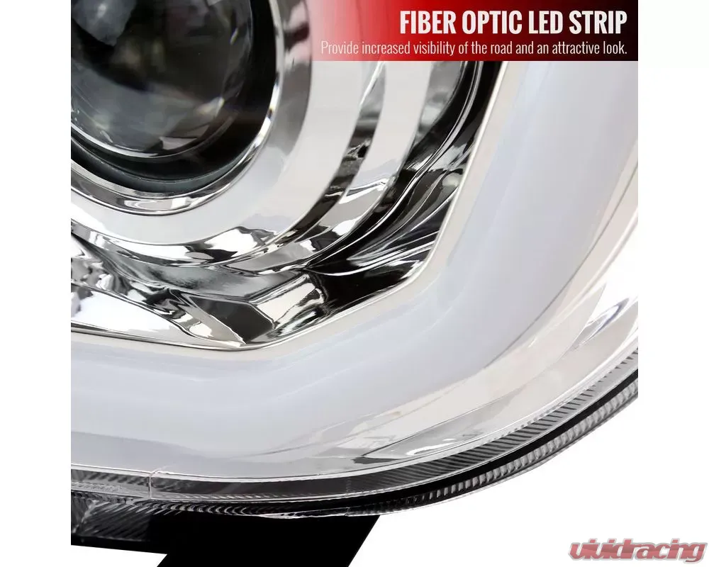 - Comes with (1) pair of projector headlights with LED bar in a chrome housing with clear lens