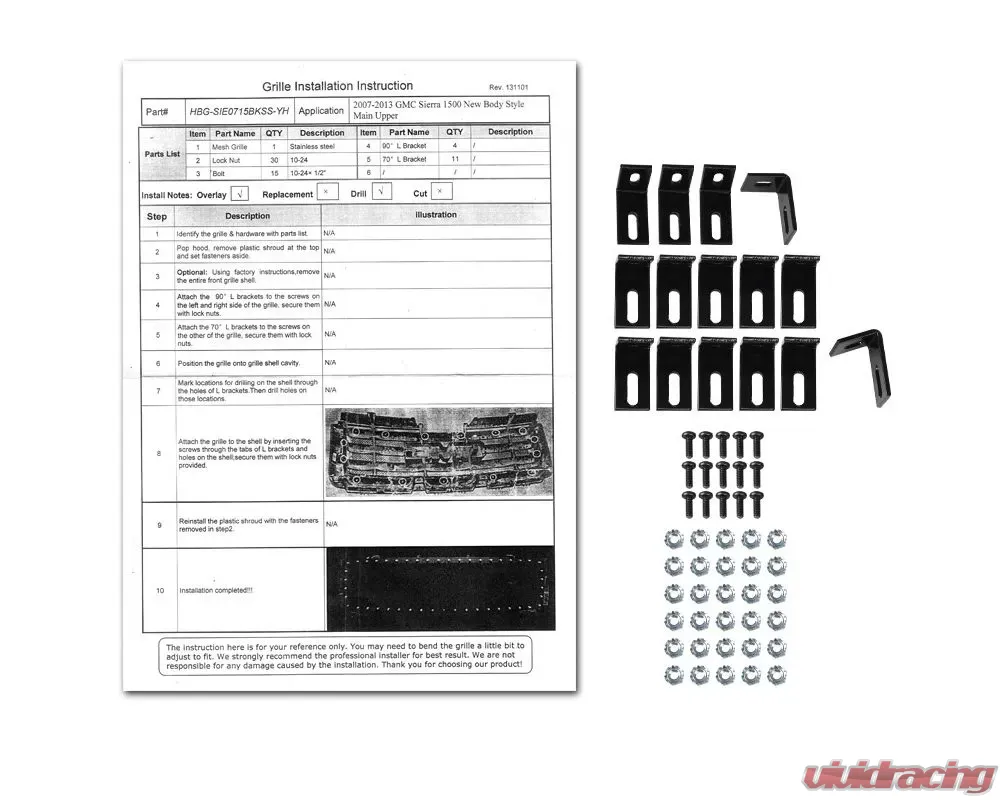 - Comes with 1 piece of mesh rivet style front main upper grille insert