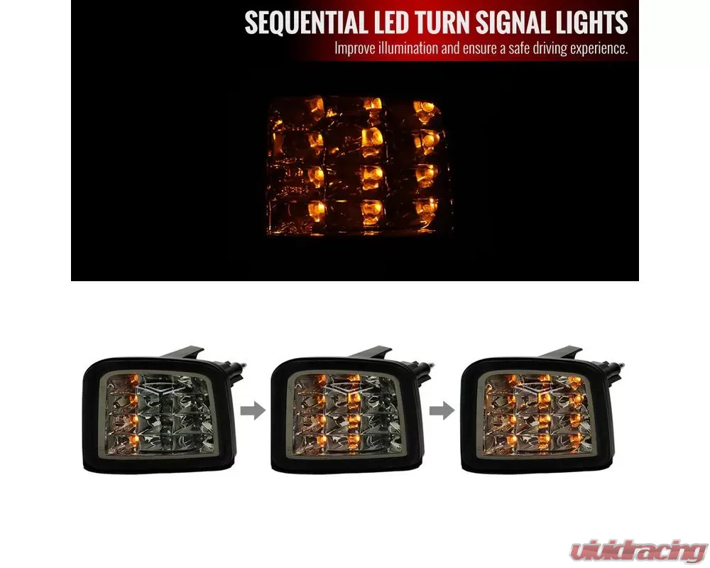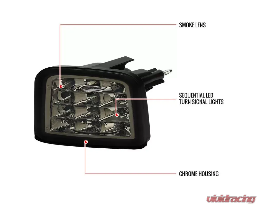 - (1) pair of chrome housing, smoked lens sequential front bumper LED turn signal lights