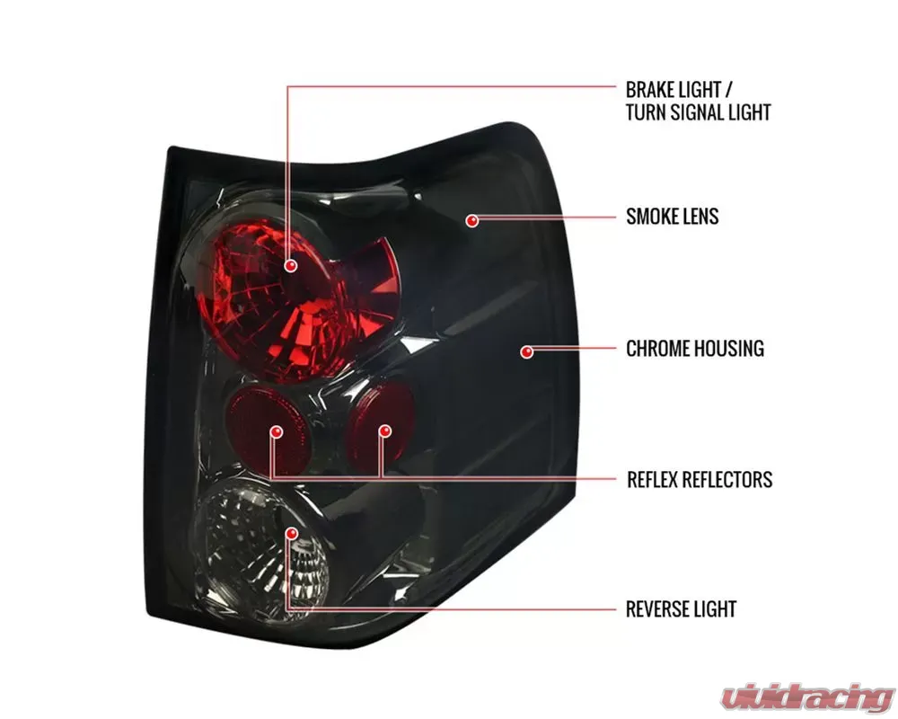 - Comes with 1 pair of chrome housing smoked lens tail lights