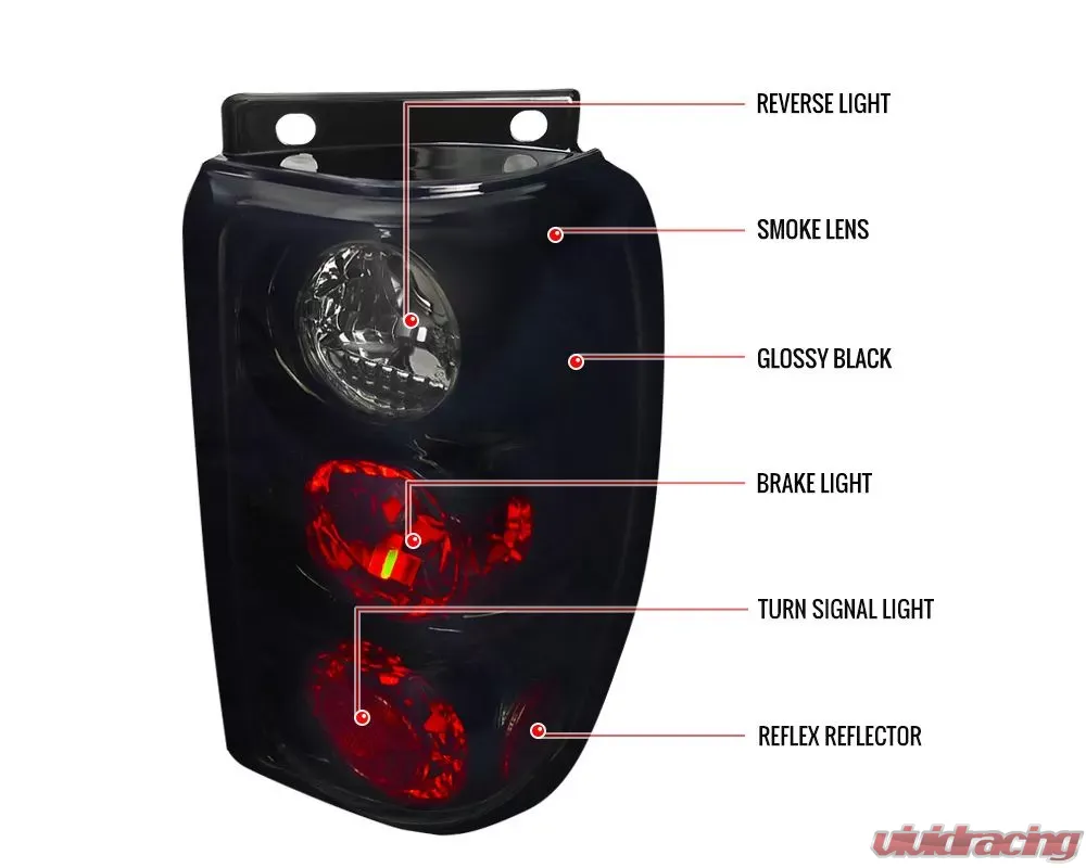 - Comes with 1 pair of glossy black housing smoked lens tail lights
