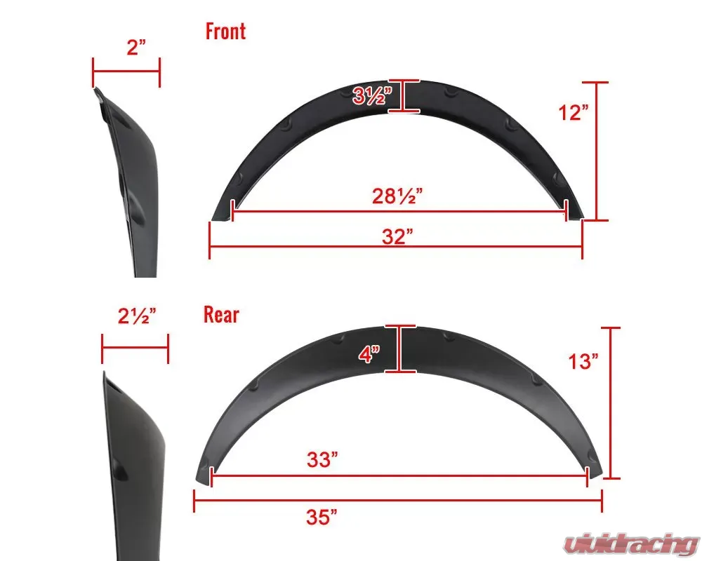 - Front Fender Dimensions: 32"(L) x 2"(W) x 12"(H)