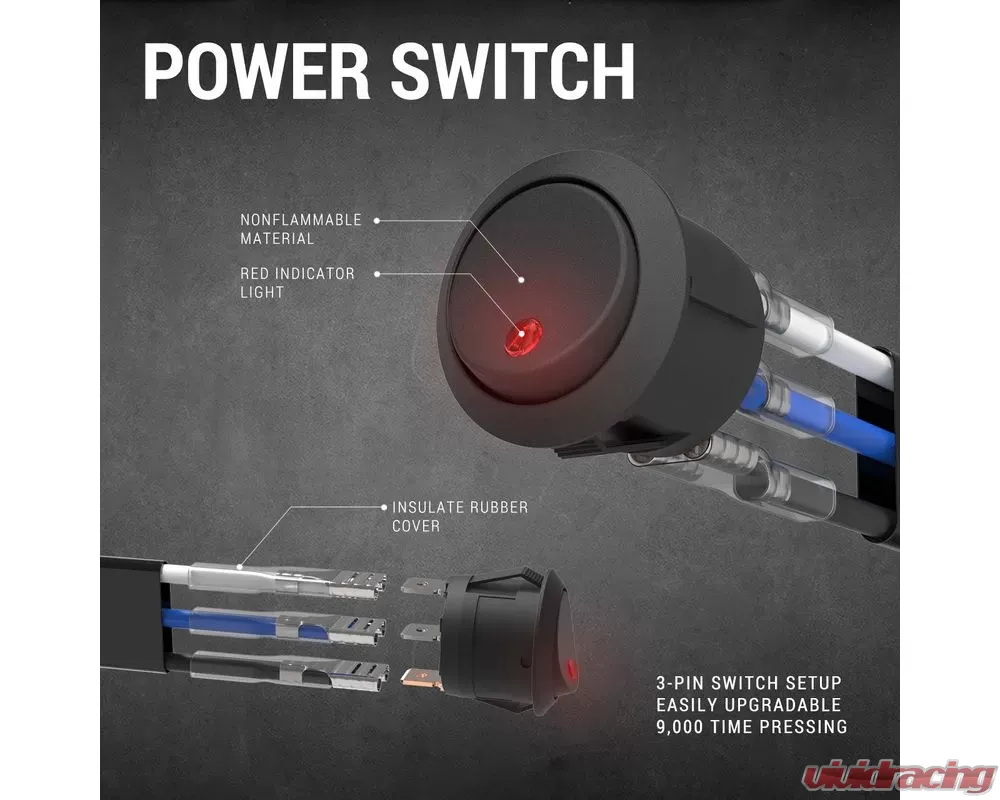 - This kit included: 1 set of full 12 gauge wiring harness with 1 connector, fuse, on/off switch, and relay