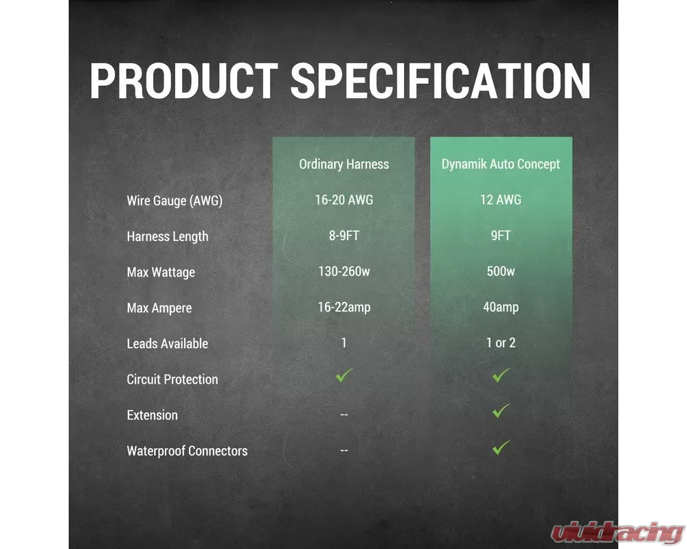 - Each wiring harness support up to 1 fog light