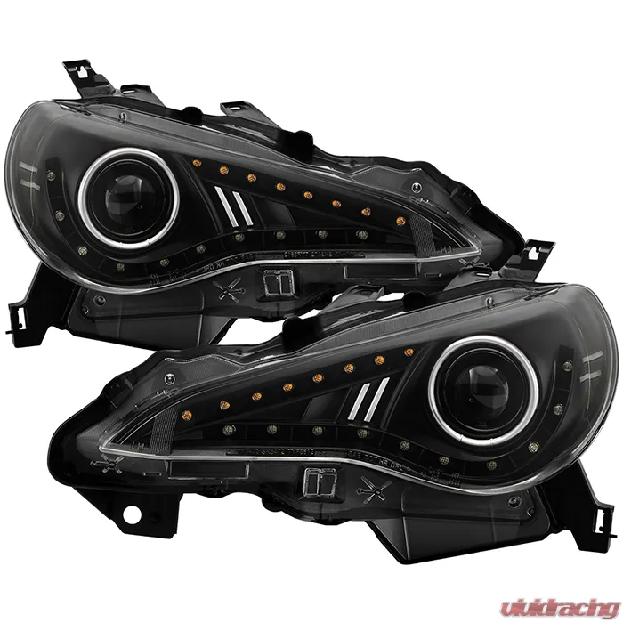 The PRO-YD-SFRS12-BK LED DRL Projector Headlights by Spyder Auto are designed specifically for the 2013-2014 Scion FRS, providing a significant upgrade over factory lighting. These headlights not only enhance your vehicle's aesthetics but also improve visibility and safety during nighttime driving and inclement weather.