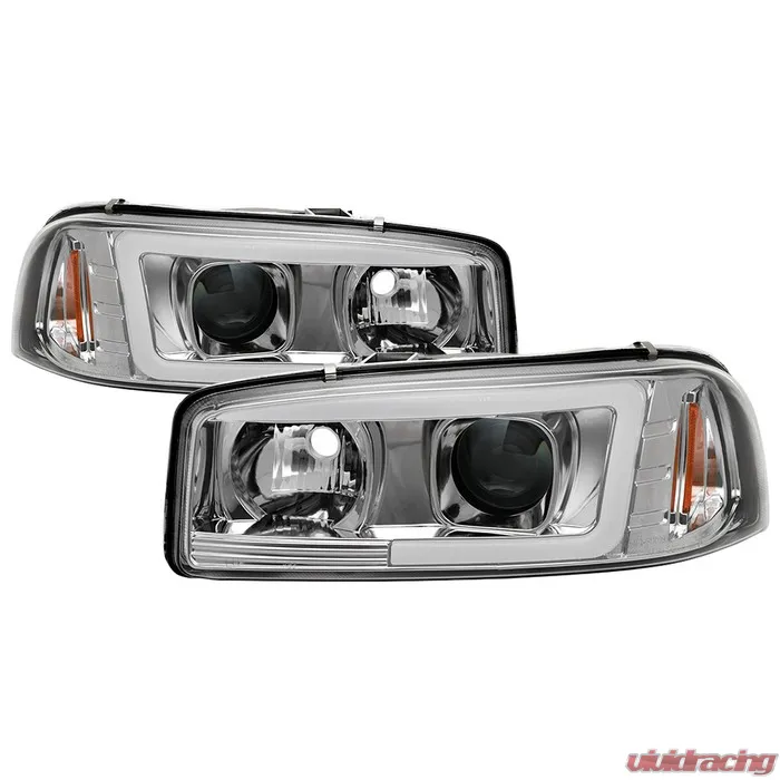 Spyder Auto Signature V2 Projector Headlights Light Bar DRL Chrome GMC Sierra | Denali | Yukon 1999-2007 PRO-YD-CDE00V2-LB-C | Vivid Racing