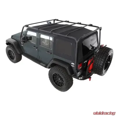 Finally, a complete roof rack system that is tough enough to conquer the off road! Constructed of over-built 2 x .120 wall textured powder coat painted steel tubing backed by heavy duty 1/4 brackets, this Roof Rack System is as tough as it is good looking! Features: Removable Cross Bars for easy Soft or Hard Top removal. Cross Bars are designed for use with almost all aftermarket accessories (Thule, Yakima, etc.).