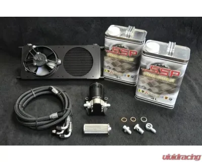 • This is a complete bolt-on package, which includes the following components: Setrab cooler and Spal/ shroud fan assembly 1) Setrab cooler and Spal/ shroud fan assembly 1) SSP High capacity oil pump assembly 2) 22mm to 16mm reducer fittings 2) 16mm to -8AN male fittings 4) 16mm x 1.5 banjo bolts 4) Copper washers 1) Cooler assembly mounting template 3) Pre-made -8AN with AN swivel fittings 2) Pump with -8AN fittings installed 1) Power wire/fuse holder 1) 30 amp fuse 4) 6mm x 1.25 x 16mm bolts 4) 6mm x 1.25 Teflon locking nuts 4) Self-tapping pump mounting screws 2) -8AN to 16mm transmission adapters (steel) 6) Zip ties 2008-2015 Evo X MR and Ralliart models