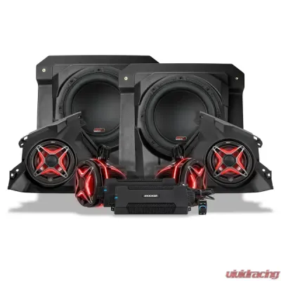 2024-2025 Can-Am Maverick R, Phase-6 V-Spec 1650-watt 6-Speaker Stereo System Introducing the SSV Works V-Spec 1650-watt Phase-6 audio-kit designed for the new Can-Am Maverick R! This advanced system enables you to effortlessly install two 6.5" dash speakers, two 6.5" rear horns and two powerful 10" subwoofers along with a set of Kicker Amplifiers that seamlessly integrates with the BPR Touch Screen system. Control the SSV V-Spec RGB speakers with the included RGB controller with 3, 5amp outputs. This leaves you with two extra outputs to color match your rock lights and whips, or other RGB accessories. Each kit includes the necessary mounting hardware required for a smooth installation. Install images show SSV Works V-Spec Speakers. This kits does include the 6.5" Kicker KM speakers for the dash and 6.5" Kicker KMXL Horns in the rear
