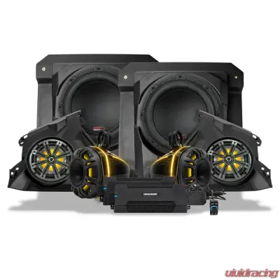 2024-2025 Can-Am Maverick R, Phase-6 V-Spec 1650-watt 6-Speaker Stereo System Introducing the SSV Works V-Spec 1650-watt Phase-6 audio-kit designed for the new Can-Am Maverick R! This advanced system enables you to effortlessly install two 6.5" dash speakers, two 6.5" rear horns and two powerful 10" subwoofers along with a set of Kicker Amplifiers that seamlessly integrates with the BPR Touch Screen system. Control the SSV V-Spec RGB speakers with the included RGB controller with 3, 5amp outputs. This leaves you with two extra outputs to color match your rock lights and whips, or other RGB accessories. Each kit includes the necessary mounting hardware required for a smooth installation. Install images show SSV Works V-Spec Speakers. This kits does include the 6.5" Kicker KM speakers for the dash and 6.5" Kicker KMXL Horns in the rear
