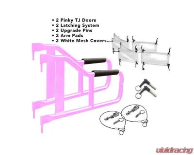 • TJ Door Kit - Pinky Doors White Mesh. Made in the USA.