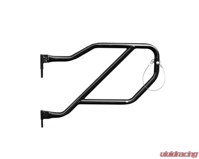 The Steinjager trail tube door's main construction is 1.25" and custom machined door hinges allow for easy switching from your stock door to the tube door. The quick release detent pin is held to the door with a weather resistant cable to ensure you don't lose your door latch pin.