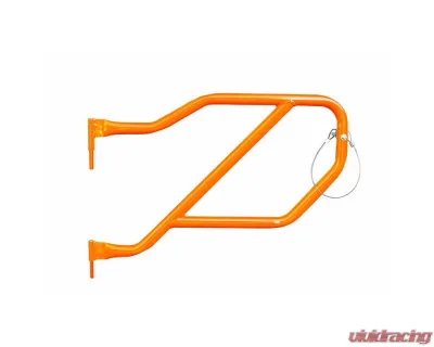 The Steinjager trail tube door's main construction is 1.25" and custom machined door hinges allow for easy switching from your stock door to the tube door. The quick release detent pin is held to the door with a weather resistant cable to ensure you don't lose your door latch pin.