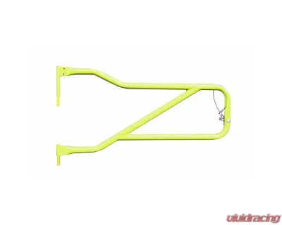 The Steinjager trail tube door's main construction is 1.25" and custom machined door hinges allow for easy switching from your stock door to the tube door. The quick release detent pin is held to the door with a weather resistant cable to ensure you don't lose your door latch pin.