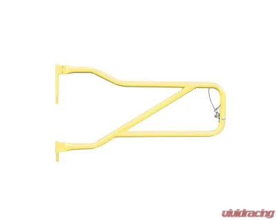 The Steinjager trail tube door's main construction is 1.25" and custom machined door hinges allow for easy switching from your stock door to the tube door. The quick release detent pin is held to the door with a weather resistant cable to ensure you don't lose your door latch pin.