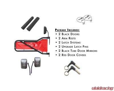 Steinjager Front Door Kit (Black Door - Red Mesh) Jeep Wrangler JK 2007-2018